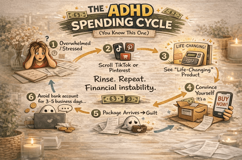 If you’re realizing your spending habits are tied to overwhelm (hi, same), the right tools can actually make a huge difference. I put together a list of ADHD-friendly products that help reduce chaos, simplify routines, and stop the constant “I need to fix my life” spending cycle → ADHD-Friendly Tools That Help You Stop the Chaos (and Save Money Too)