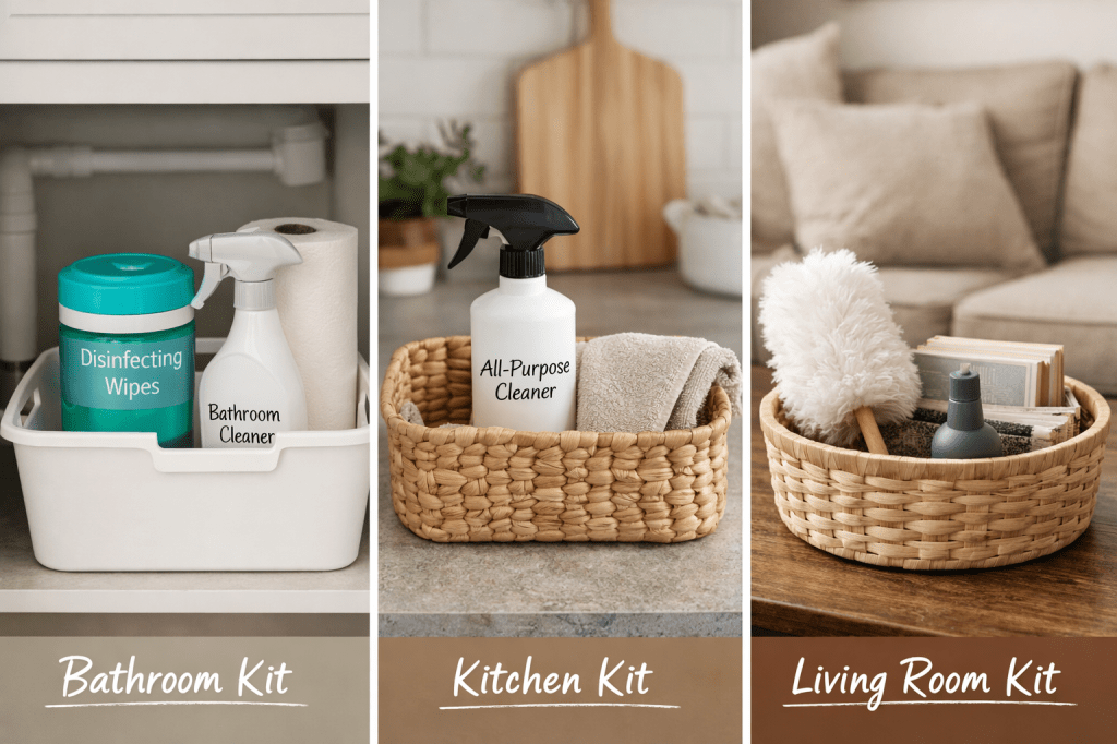 🧼 2. The “One Room, One Kit” Cleaning Setup
