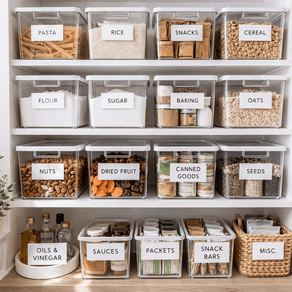 - labeled bins & baskets
